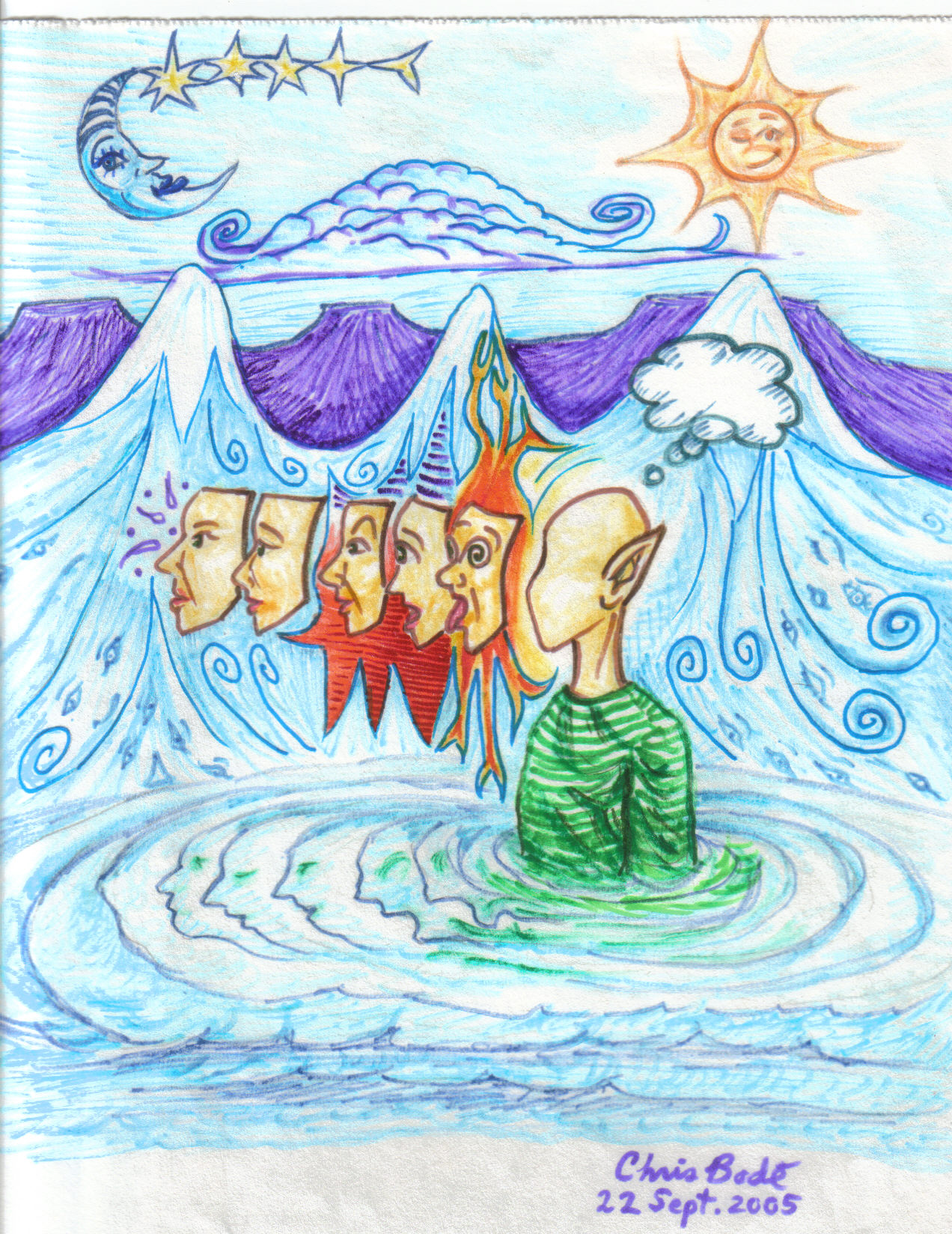 A felt tip drawing of a Swimmer going for a dive into Sally Maria's realm.